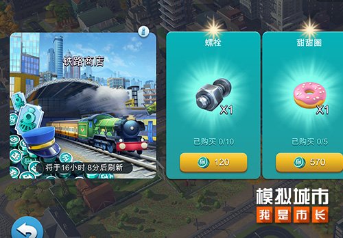 玩家通过调度火车赚取铁路模拟币时,可以在全新的铁路商店购买各种城市发展道具和火车物品。全新的火车物品包括:螺栓、列车员帽、信号灯等。当玩家在升级房屋或执行某些任务时需要使用这些材料时,可以进行交换。