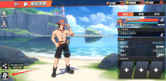 立正!(清除大航海3-4《小丑巴基》后开启兑换码功能)