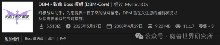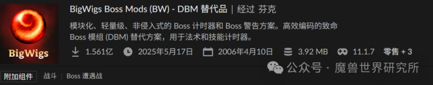 详细信息是玩家最熟悉的伤害统计信息。 Hazzikostas前面提到,最受欢迎的插件是损坏统计插件,这很可能是细节。他说,诸如中断,康复和损害之类的功能将嵌入游戏中的伤害统计学家中。小龙(即WA)-22140万下载:一些受影响的小龙本身并未受到影响的大多数功能(除了某些模板,下拉菜单和选项页面除外),但是将会受到大量其子plugins的影响,这将在下面详细解释。 Bigwigs Boss Mods -1.549亿下载:完全无法使用