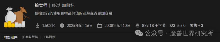 与DBM竞争的Bigwigs的命运是相同的。 Auctionator -1.492亿下载:未影响