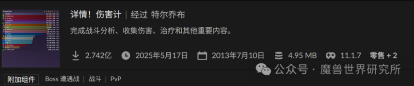 许多玩家不知道这是一个插件,可以捕获玩家的地牢数据,例如显示的播放器得分,当前键,最高级记录等,所有这些都是由其完成的,raider.io从网站上获取了复制成就数据,并在游戏中显示了它,而无需依赖战斗信息。详细信息- 2.724亿下载:完全无法使用