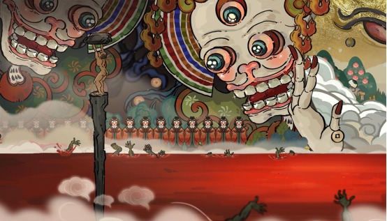 该游戏将电子巫乐呼麦蹦迪——魔性叛逆的听觉盛宴推向极端,并结合了各种民间元素来解构和重组:游戏UI可能是艺术品手工制作的瓷器作品,老板战斗场景可能是唐朝西部地区的库查(Kucha),敌人的攻击轨迹可能来自Dunhuang Merals; NPC从宫殿到民间的身体构成,从学者到鲜血的NUO西装,最终变成了一种危险的形式,融合了《簪花仕女》和《十王图》。