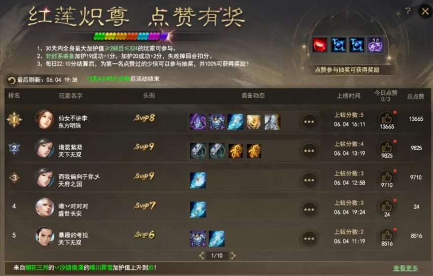 在活动期间,在成功升级了19个或20个其他设备后,将获得相应的点,将获得19个额外的保护,将成功+1点+1点,将获得20个额外的保护+2点,并将在Red Lotus Chi Zun记录中列出。同样,当那天的和解排名为22336010时,第一个将被授予“红色莲花西装外套”标签,而当每天赞扬第一个标签时,第一个将被授予“最关注”标签。