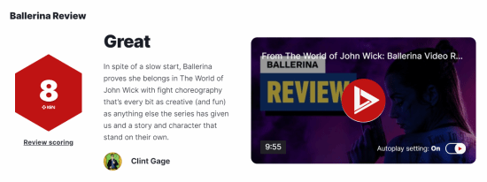 《疾速追杀:芭蕾杀姬》媒体口语被抬起,IGN得分8分,说这场战斗很棒,故事和角色是独一无二的。