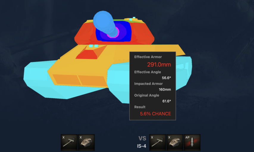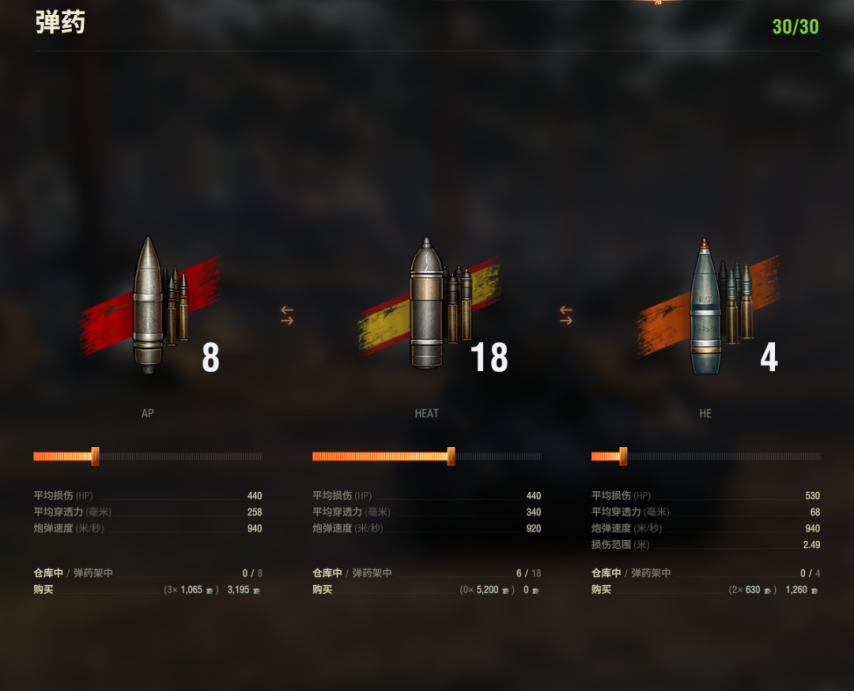 AP通过258毫米的深度弹跳,当面对同一级别的重罐的前装甲时,它会有些弱。它应该专注于详细针对弱点。