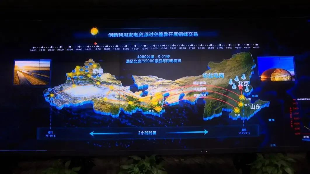 北京电力交易中心有关负责人介绍道:“这是我们从西北向北京地区送电的示意图。可以看到现在正好是下午五六点钟,这个时候北京地区正在进入傍晚,负荷开始攀升,很多重要用户开始增加用能。这个时候新疆仍然处于日照条件很好的状态,它的新能源还有比较强的发电能力,这个时候我们就可以通过全国互联电网,把西北的富余新能源通过电网源源不断送到北京地区来,供北京地区的用户使用。”