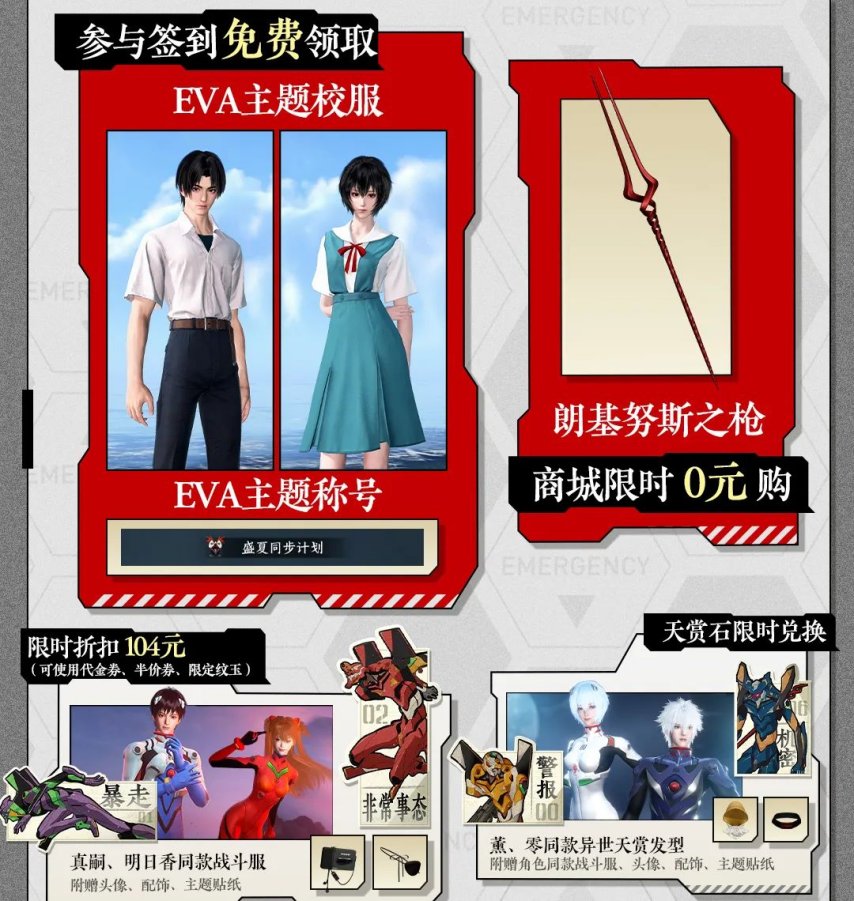 在链接期间,可以通过事件免费收集以EVA为主题的校服[纯白色的月光] [蓝色微风] [仲夏同步计划]。此外,球员还可以通过活动获得300名玉券(有限时间),150枚玉牌和标题(仲夏同步计划)。