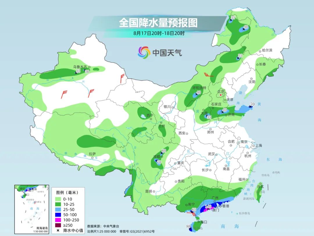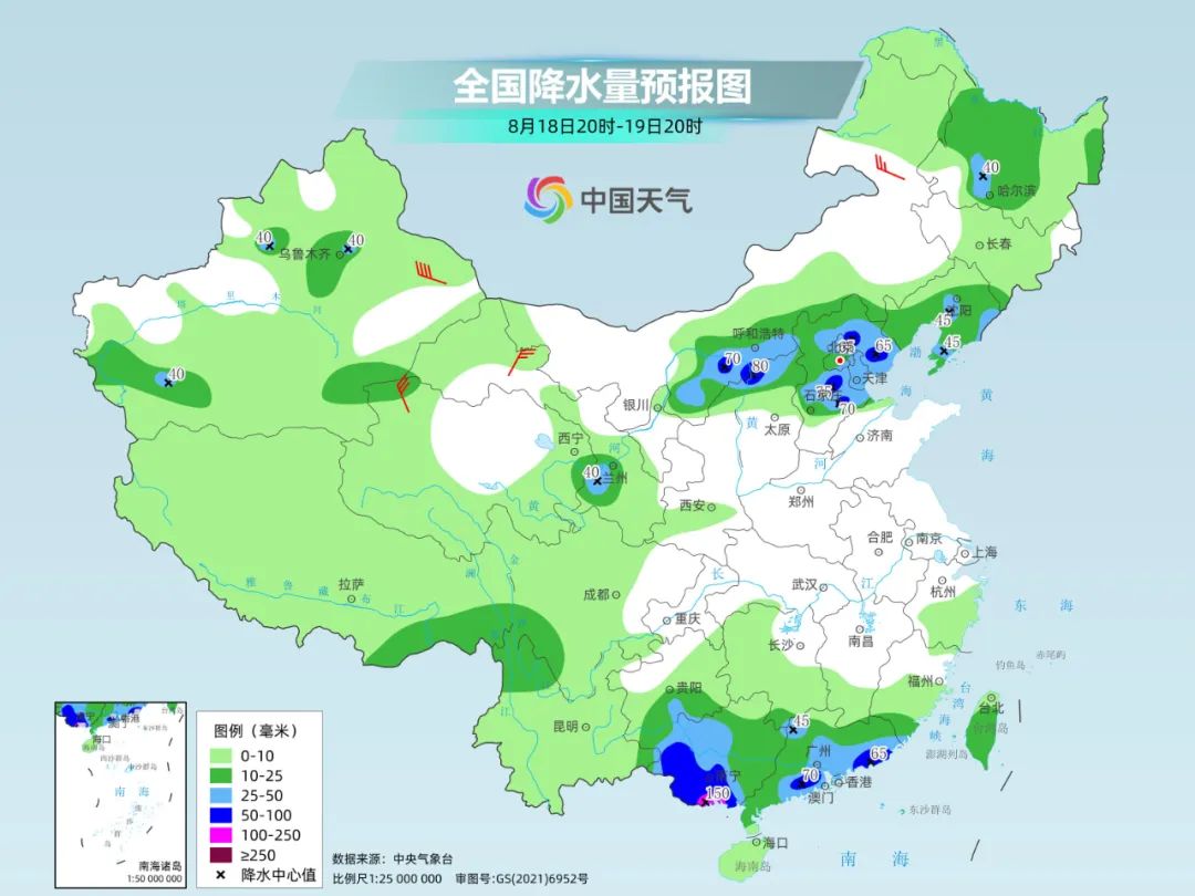 由于副热带高压边缘大气条件较为不稳定,加上高空槽移动快,北方多地降雨呈现明显分散的特点。像明后天,内蒙古河套地区、山西、京津冀等地有分散性的强降雨。