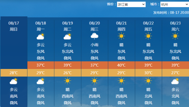 常年立秋期间,江南城市出现高温属于正常情况,但对华北南部、黄淮一带来说,立秋期间出现持续高温天气是比较少见的,大家要继续注意防暑降温。