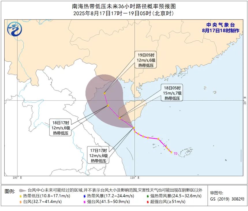 目前,南海上有热带低压活动,预计该低压将于17日夜间至18日凌晨擦过或登陆海南岛西南部沿海(6~7级,12~15米/秒,热带低压),18日上午移入北部湾海面,强度逐渐减弱。
