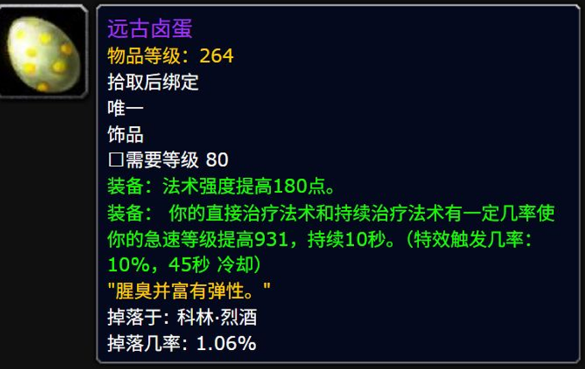 古老的盐水卵是264级的居民属性是180个咒语强度,特殊效果为931急速水平,持续10秒钟。