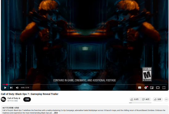 上周,Activision发布了《使命召唤:黑色行动7》的游戏预告片,但受到了很多批评。截至发稿时,观点数量已达到4677万,但也收到了大量的负面评价。有400,000个步骤,而喜欢的数量仅为55,000。