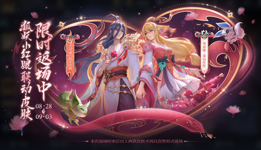 从2025年8月28日至9月3日,Shaosiyuan-Tushan Honghong和Dasiming-Dongfang的两个皮将直接出售,并支持收购绑定点;回报后,这两种皮肤将不再直接出售。同时,相关的链接语音和广播资源也同时返回了场景。