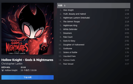 作为参考,《空洞骑士》的OST第一代本体学包含26个曲目,随后的DLC的OST“神与噩梦”包含15个曲目。换句话说,《丝之歌》中的OST轨道数量是先前工作的两倍!