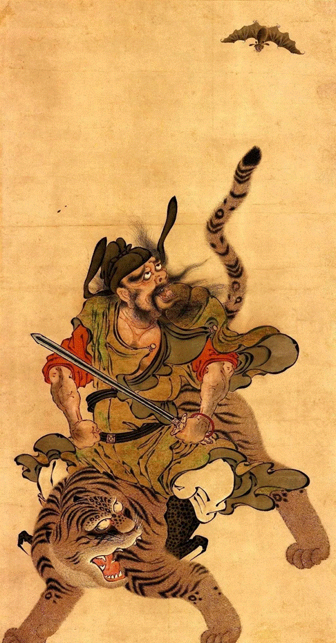 在预告片中,中库伊(Zhong Kui)从明朝骑着一只老虎,《钟馗骑虎图》,没有典故,而是力量和能力的象征。老虎是所有野兽的国王,拥有强大的力量,但郑库驯服了老虎,并充当了强调中库力的力量的山。但是,尽管循环版本不同,但中库的功能是杀死恶魔,消除邪灵,祈祷祝福并拯救房屋。