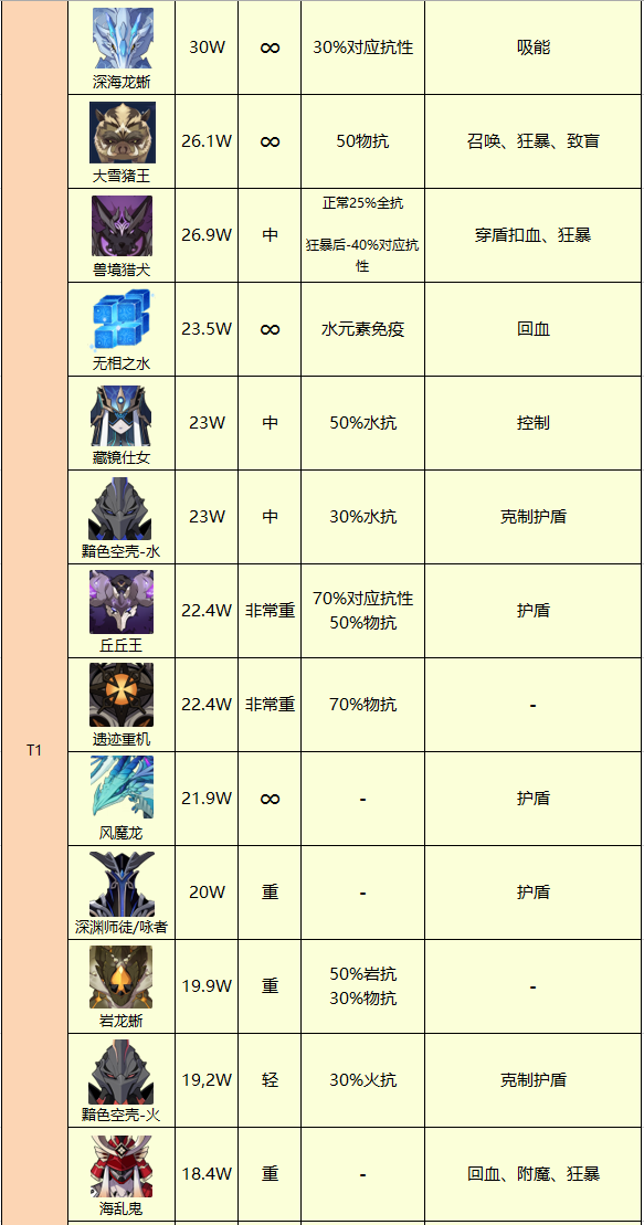 至于T3水平以下的原魔,这里不建议原魔玩家使用。所有等级都属于白给的类型,死后会产生大量的元素粒子,让旅行者可以更快的大招变好。