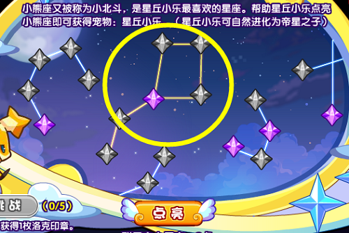 5.当大熊座全部点亮(上图黄色圆圈为大熊座)后,就可以领取你的宠物:星丘小乐了。