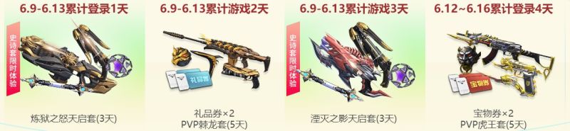 6月9日-6月13日,累计登录游戏1天,即可前往游戏内活动中心,领取天启-炼狱之怒史诗套(3天)的重磅好礼;