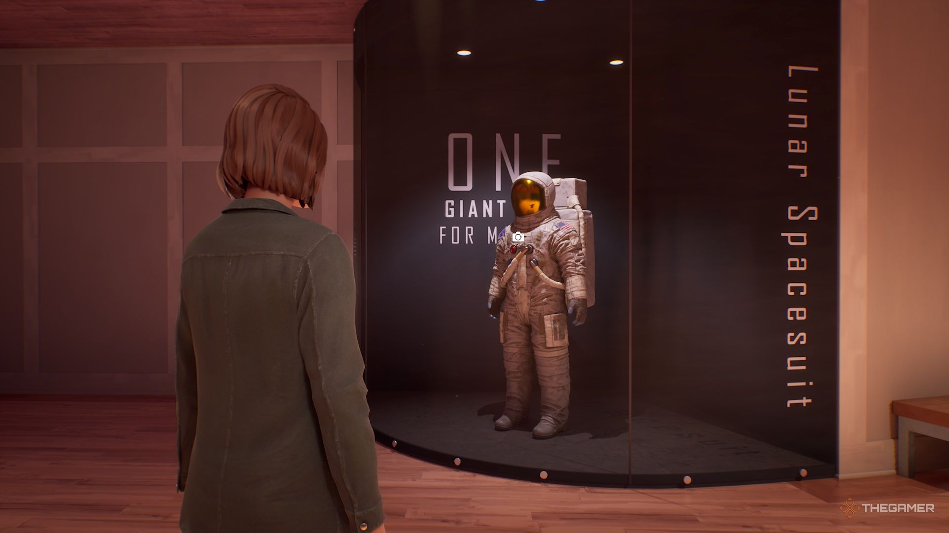 天文台内,走过楼梯并向右转。这将带您靠近电梯。旁边可以拨打在玻璃后面找到一套宇航服。给它拍张照片。