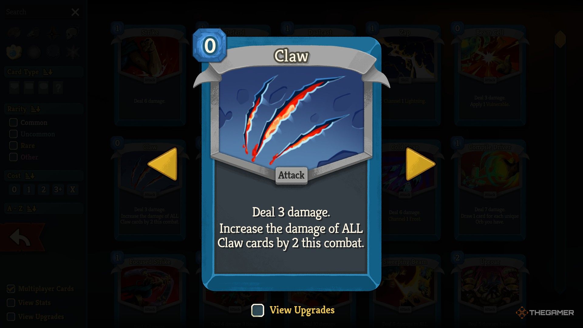 从名字就可以想象,利爪流将专注于使用“爪击”,一张零费卡牌,对一个敌人造成三点伤害和增加你牌组中每张“爪击”卡牌(包括其自身)伤害。