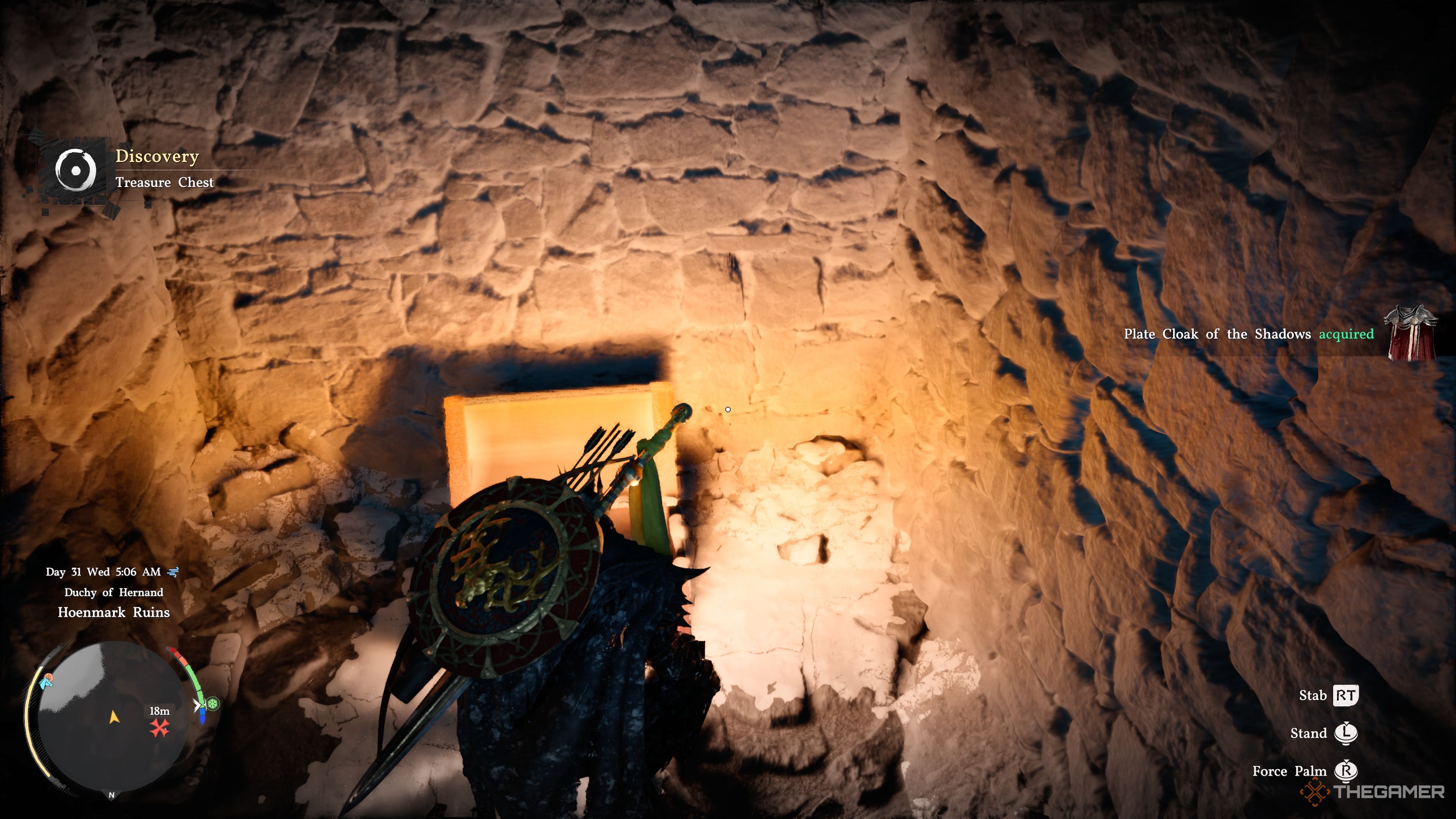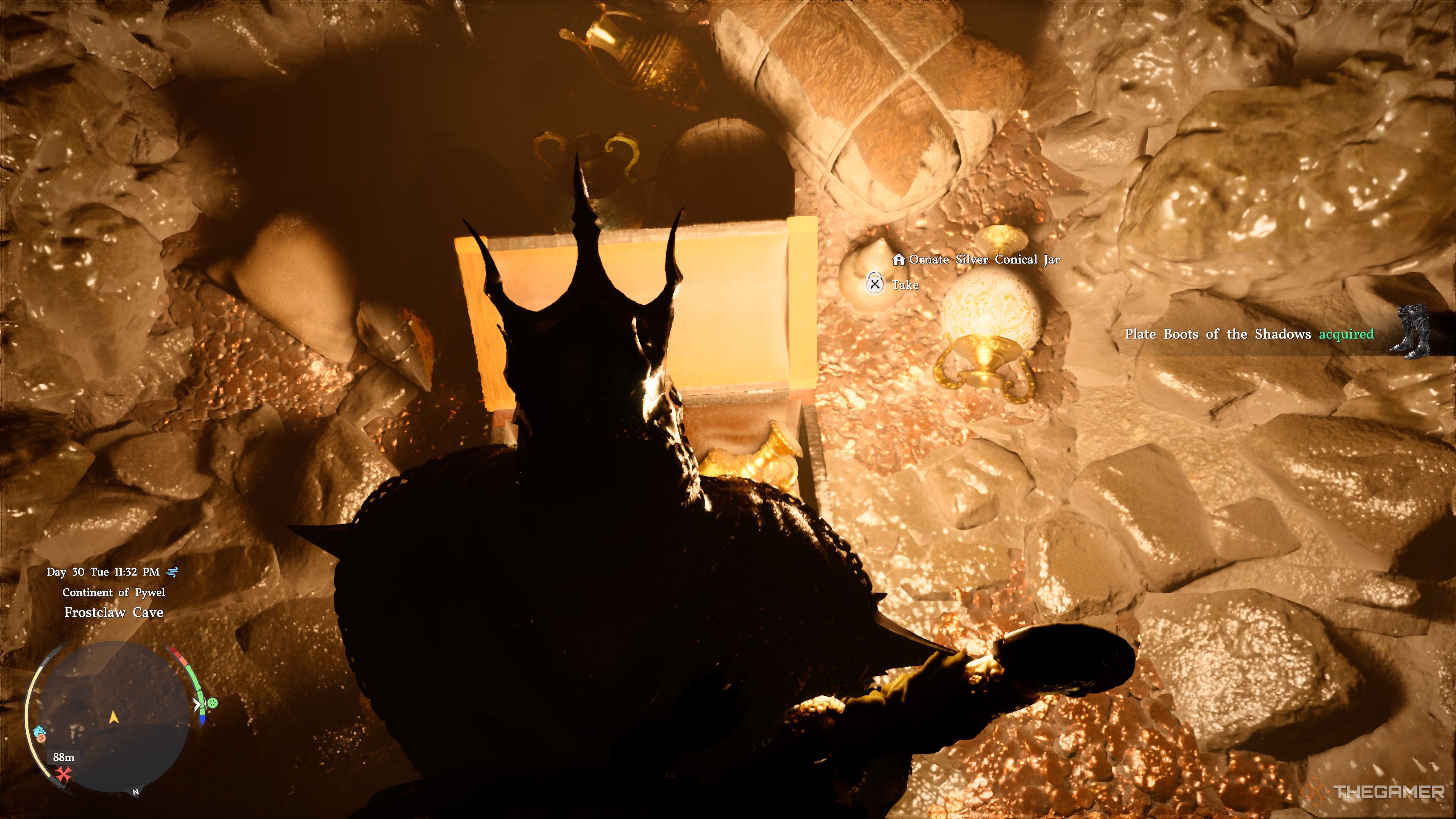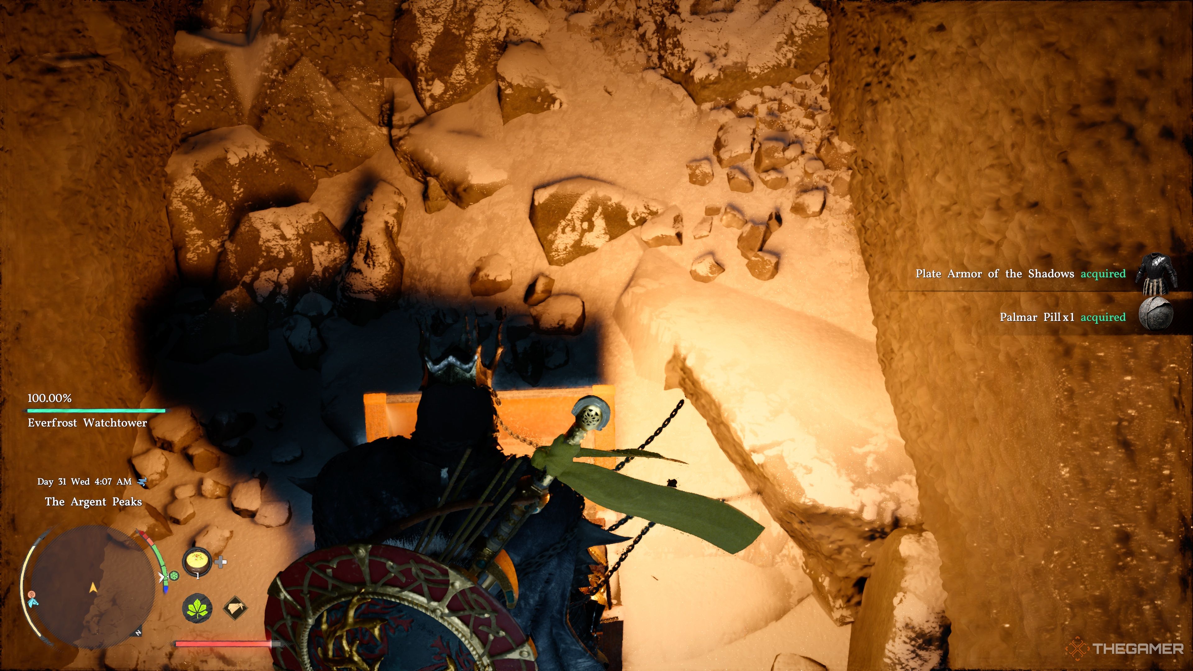 接近洞穴深处获得精炼帕默药丸和第二件铠甲暗影护腿。