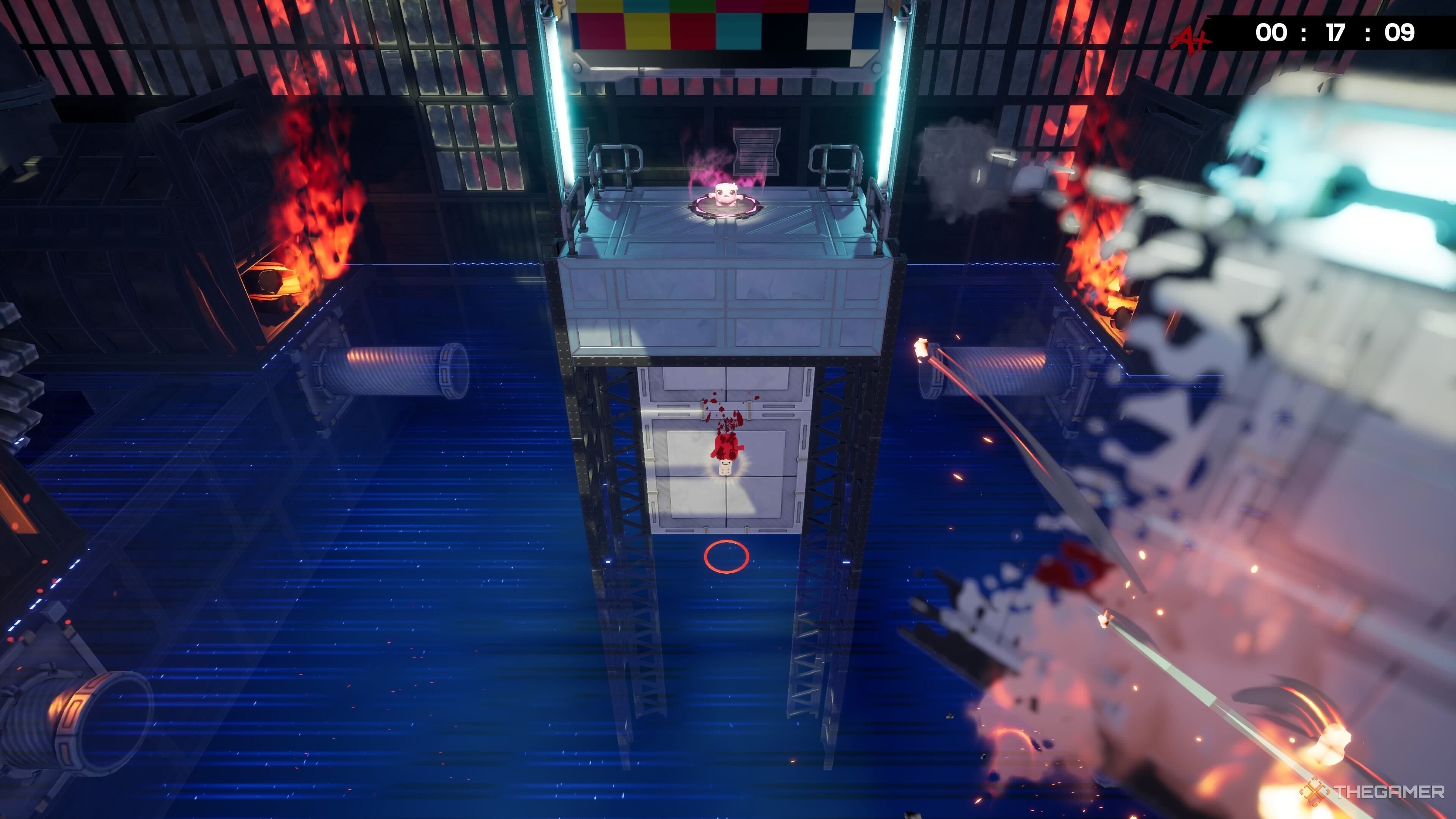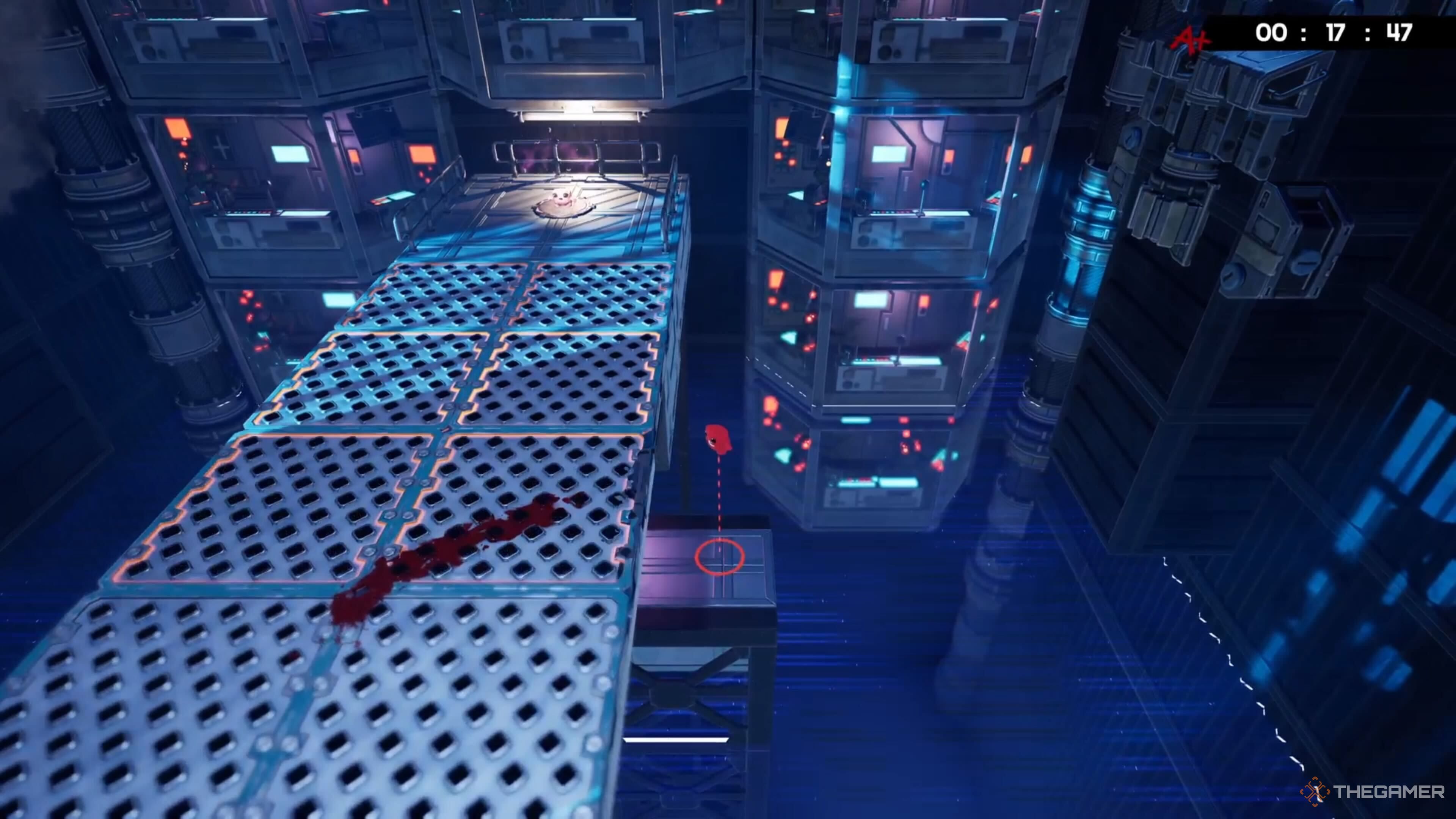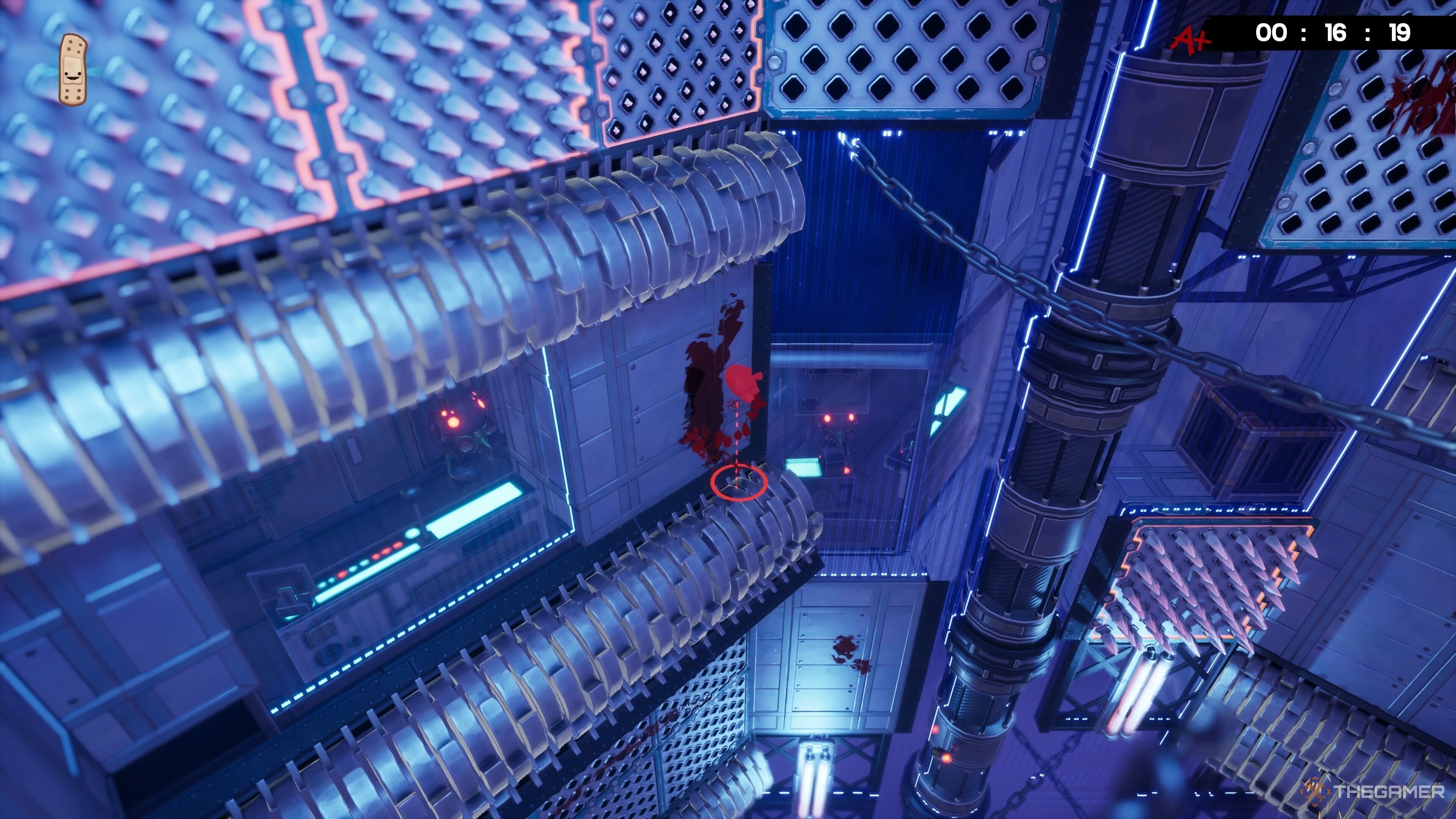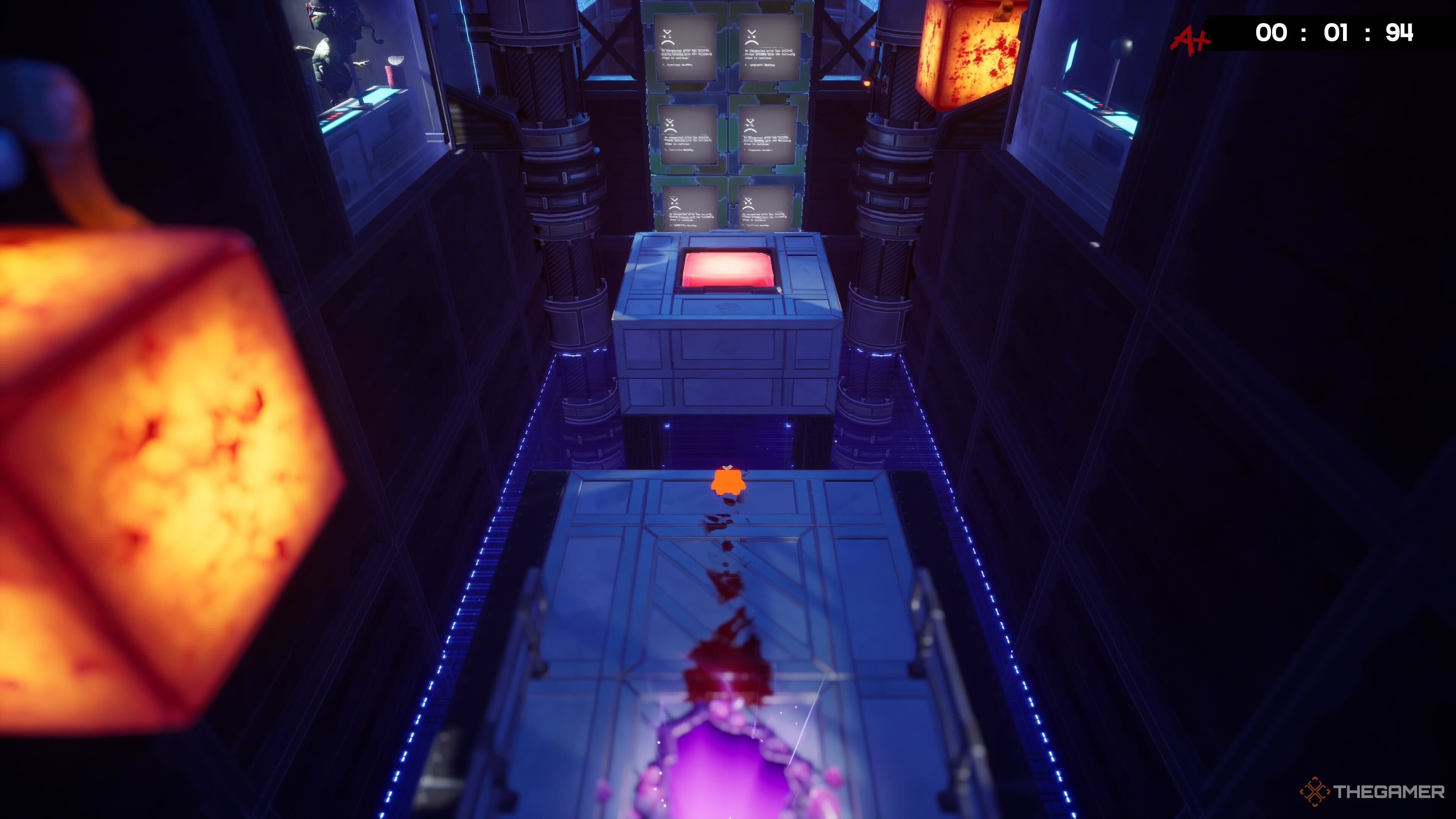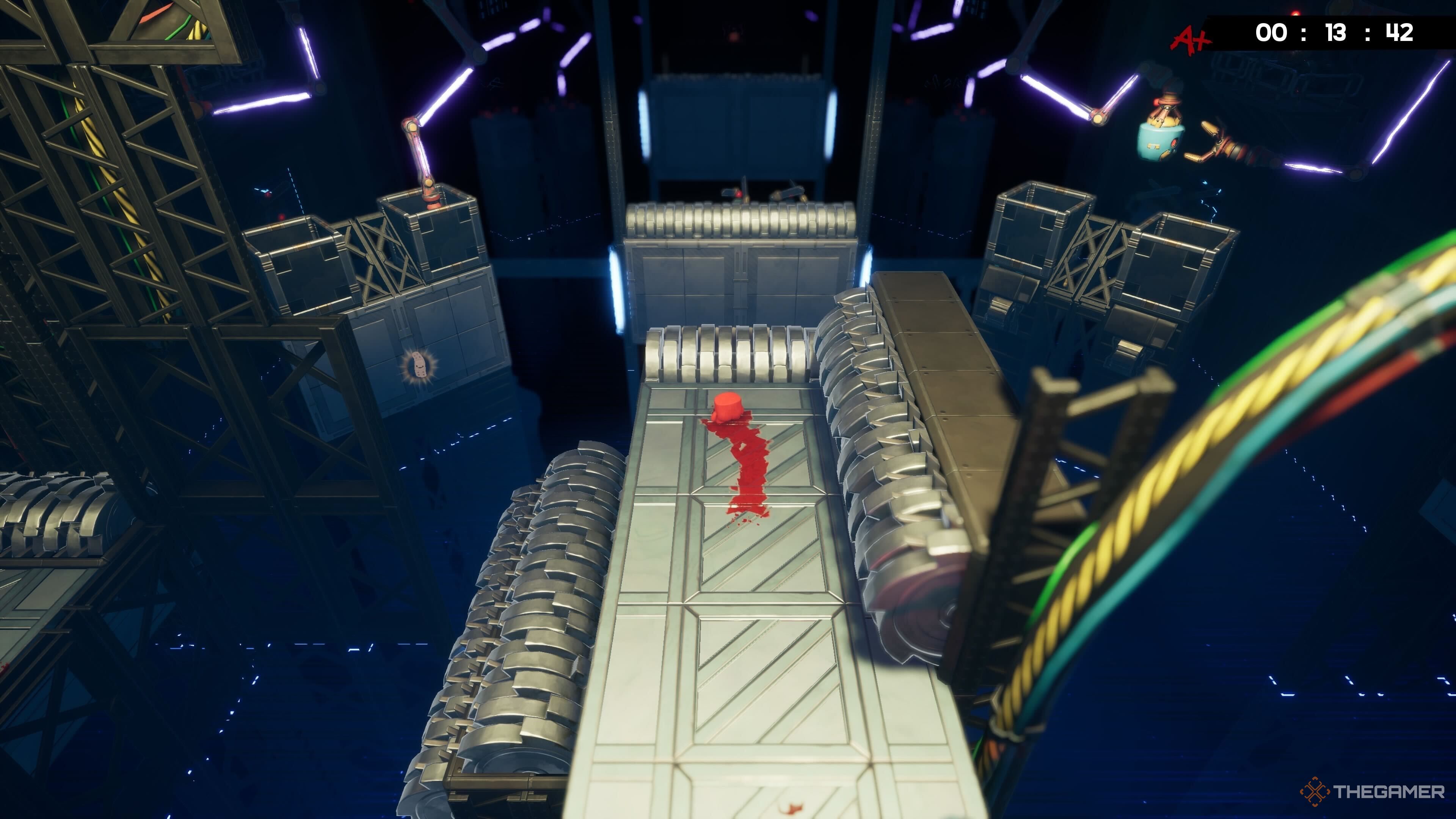 “测试室”中的绷带接近关卡的尽头。当您到达时请致电那个为绷带女孩清除路径的大红按钮时,跳到右边抓住绷带。时机有点棘手,所以尽快跳回中间平台。