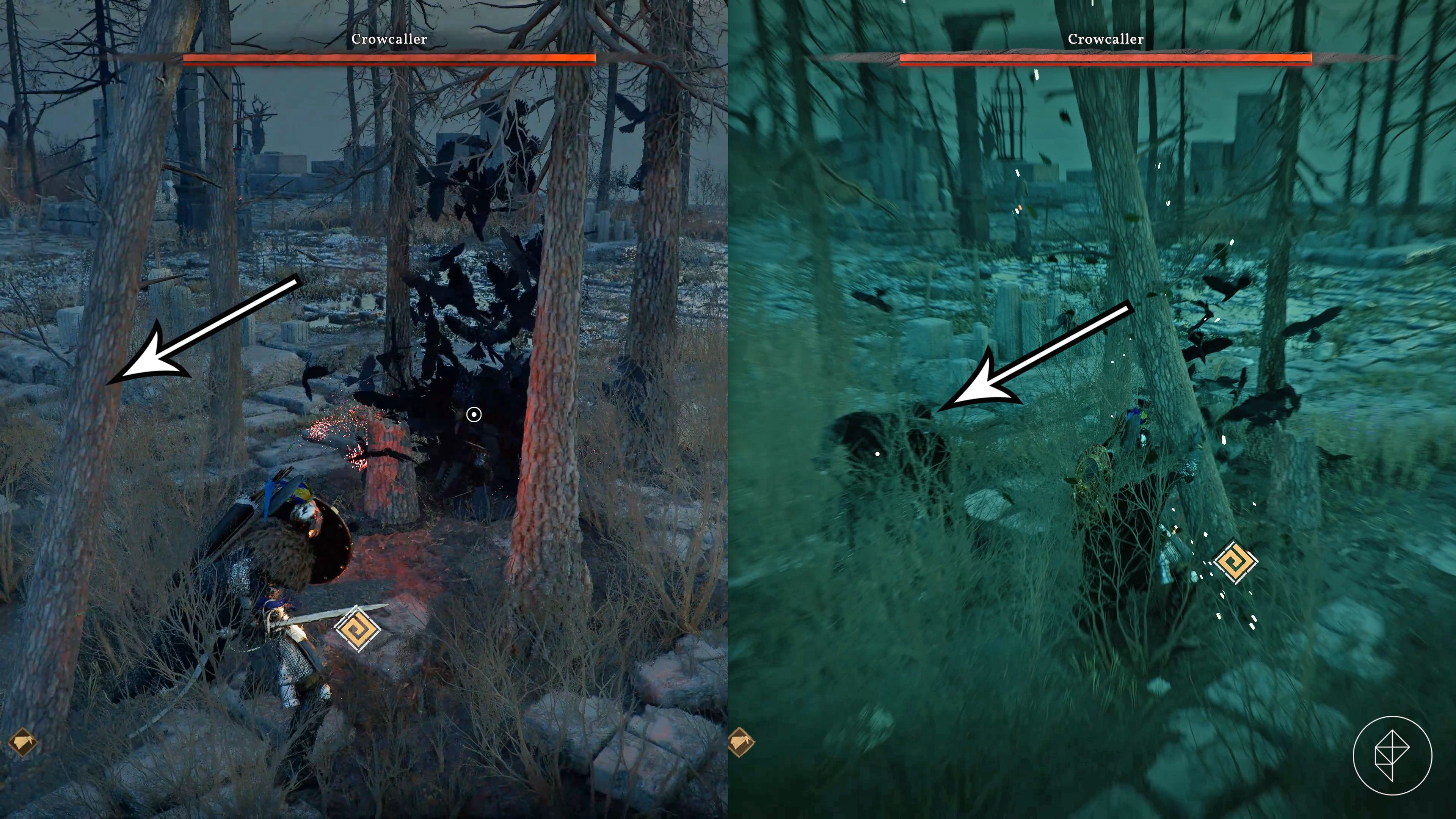 当你进入鸦巢并穿过新月立交桥时,你必须首先击败一群乌鸦兄弟小怪。击败他们后,将播放一段简短的过场动画来介绍乌鸦哭泣者。准备好在这段过场动画一结束就举起你的盾牌。