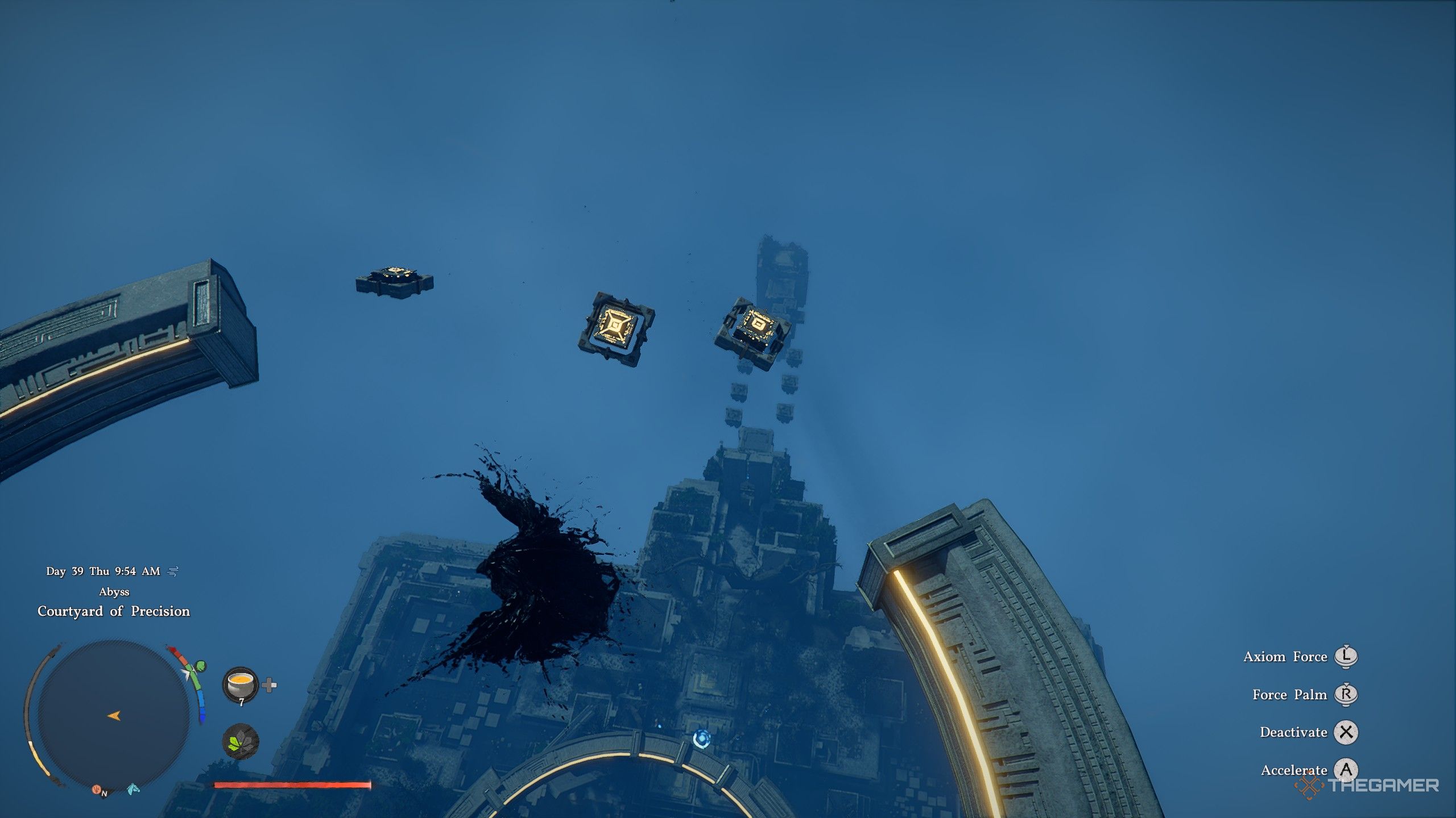 现在选择与“洞察圣所”相连的深渊枢纽,并前往这座岛屿。如果你完成了第四章,谜题本身应该已经解决了,所以穿过三角门并在讲台上使用“Axiom Power”在你面前打开一条通道。完成简短的平台部分,直到到达“秘密花园”岛。