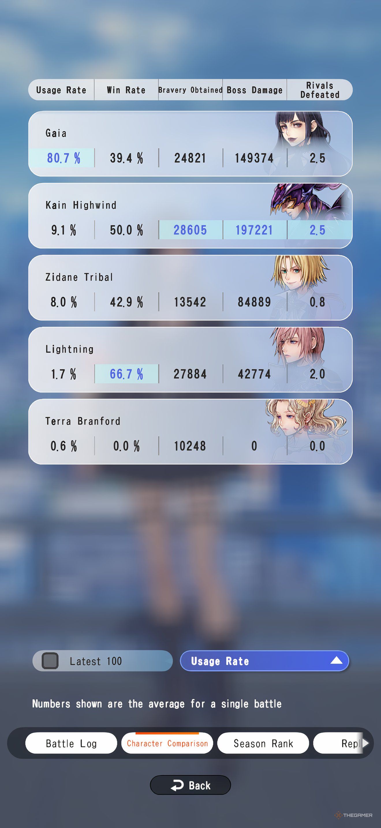 如果你想变得更好,你需要做的一件事就是检查你自己的统计数据。您的字符比较屏幕将显示您团队当前的目标、您使用率、胜率和您获得的勇气值。