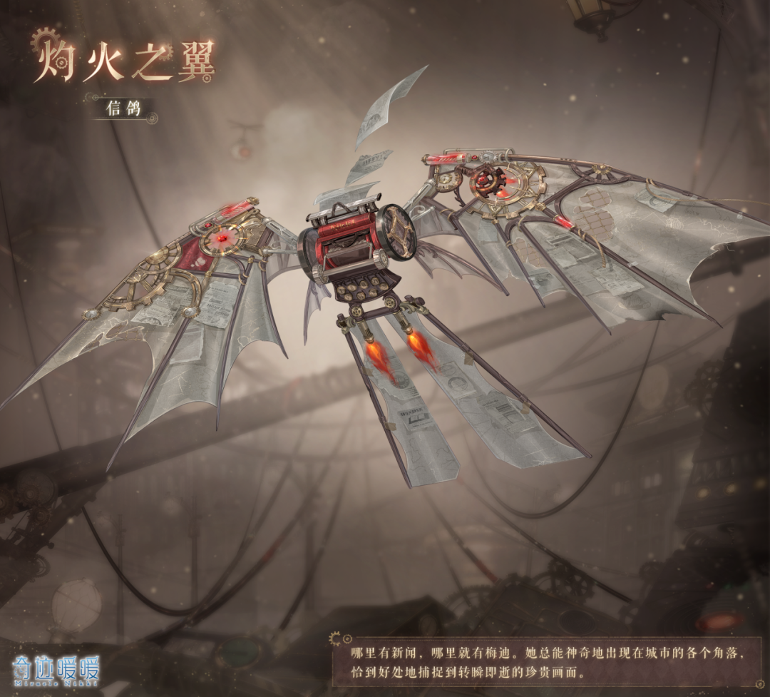 逐风之翎附上金属翅膀,喷出的蒸汽将她推向空中,
