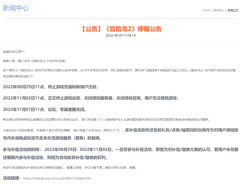 2022年11月,国服将正式停止运营。