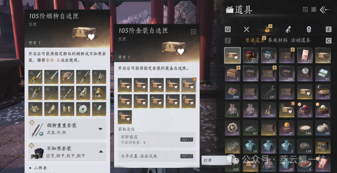 首先要准备的就是装备。目前可以确定的是,新武器就是武灵谷,所以我们肯定需要重新获取武器装备,重新训练。按理来说,武器箱会随着版本的更新而更新。由于武灵鼓也是105级装备,所以版本更新后箱子也会随之更新。至于自选的装备箱,你也可以选择先储备一些。毕竟,我们还不确定新的武馆是会选择之前已经存在的装备还是额外增加一套!