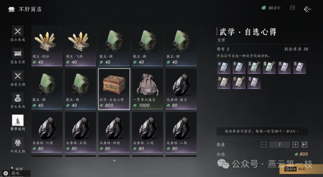 其次,就是自选武术的经历。要知道,按照官方的说法,武灵谷和范将组成一个新的武功,也就是说将会推出1到2个新的武功。既然如此,那么自然要准备更多的武学自选箱。