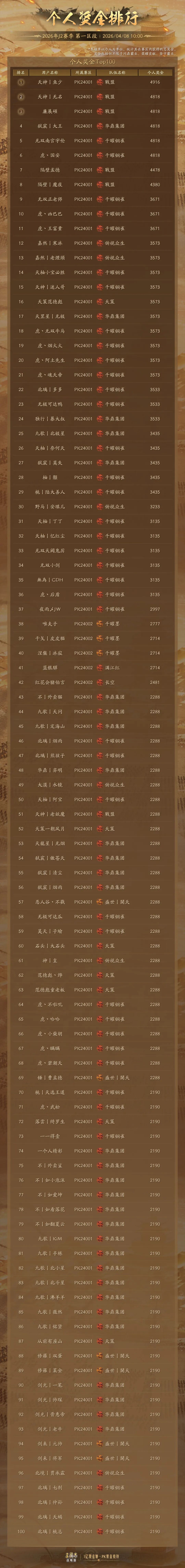 一区段个人奖金排行TOP100强者终有好报!本次J2赛季第一节,来自“战盟”的大神羽少一骑绝尘,独揽全区最高奖金——4916元!榜单前三位的领主都来自“战争联盟”,战功赫赫,加成就足以证明这一点。