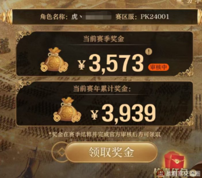 提现啦!一亿现金赛首批次的奖金可以提现啦!@三战绊脚猫无论是谁看到001号桌的奖金都不会感到困惑。 001桌前30名的奖金高达3000多元!我们老虎集团作为一个分区的第一个分公司,也是人手高额奖金。我个人赚了2000多块钱,用实力说话,用军功换奖励。下赛季继续冲击高额奖金!