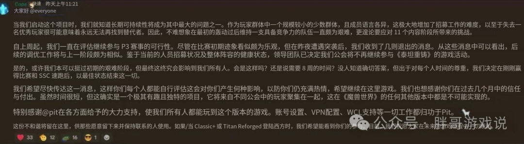 但也正是因为首杀,导致《fast》公会分崩离析,公会管理员宣布退出时间服务器。《fast》 退出时间服务器的原因很现实,那就是副本难度太低,而后续raid的调整方向也是不断降低难度,这让首杀变得毫无意义。