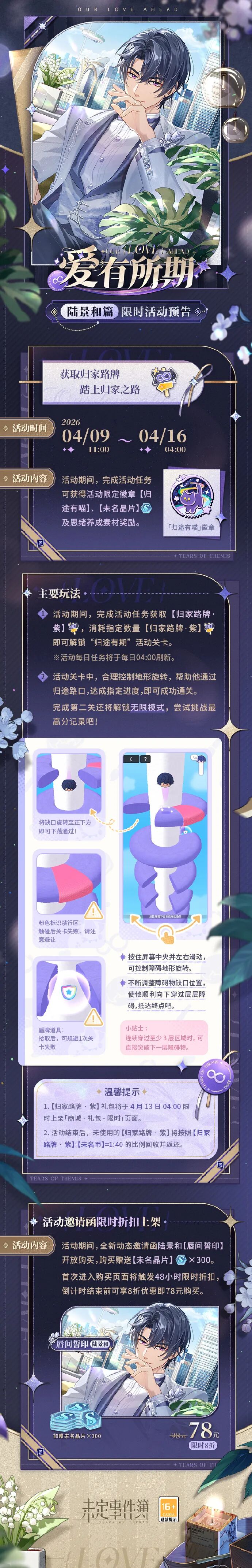 米哈游《未定事件簿》宣布限时活动“爱有希望·陆景河篇”将于4月9日至4月16日上线。