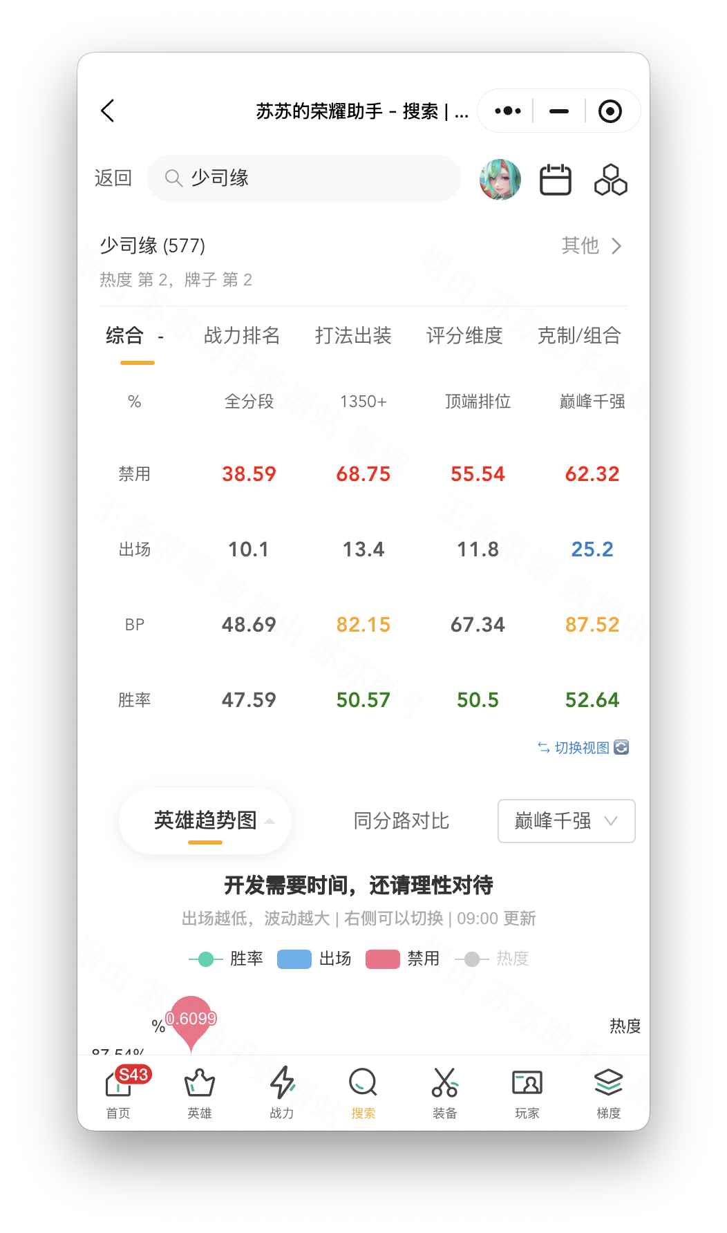 尤其是射手,如果被她抓住或者踢到,他们的血就会掉一半。大家都知道她的危害很大。所以这次的削弱确实可以说是在大家的意料之中。至于支持,应该是支持的样子。从数据上看,虽然整体下滑并不是特别夸张,但也终于让她回到了50%的胜率线。 03