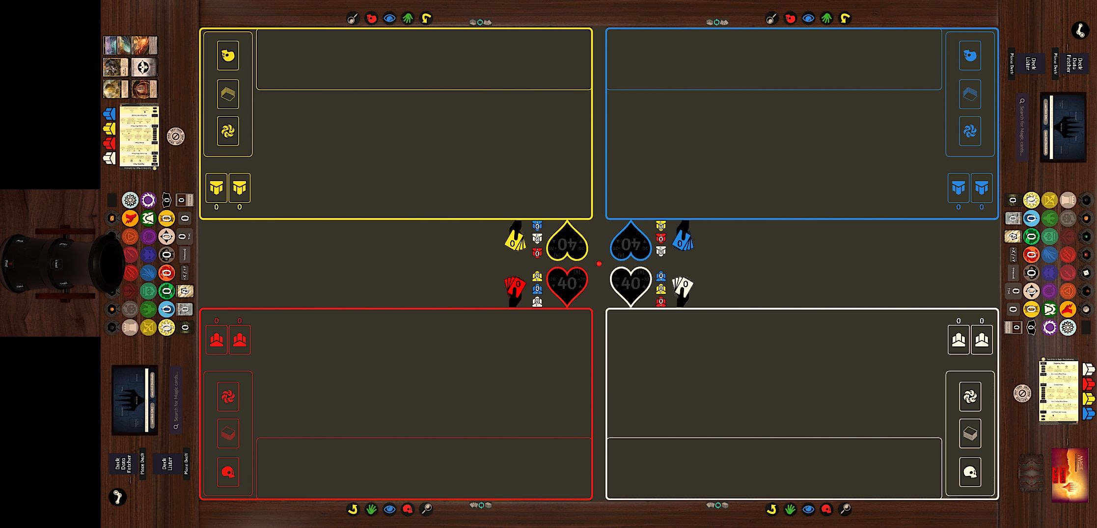 当然,没有卡牌就不是卡牌游戏。幸运的是,有一个甲板导入工具支持Moxfield 和Archidekt 等网站。只需粘贴网址即可。这些卡片有完整的艺术品,虽然在上面放置指示物可能有点麻烦(Lorwyn Eclipsed 的枯萎诅咒牌组将考验桌上每个人的耐心,直到您习惯为止),但您可以通过按住Alt 键来放大卡片。