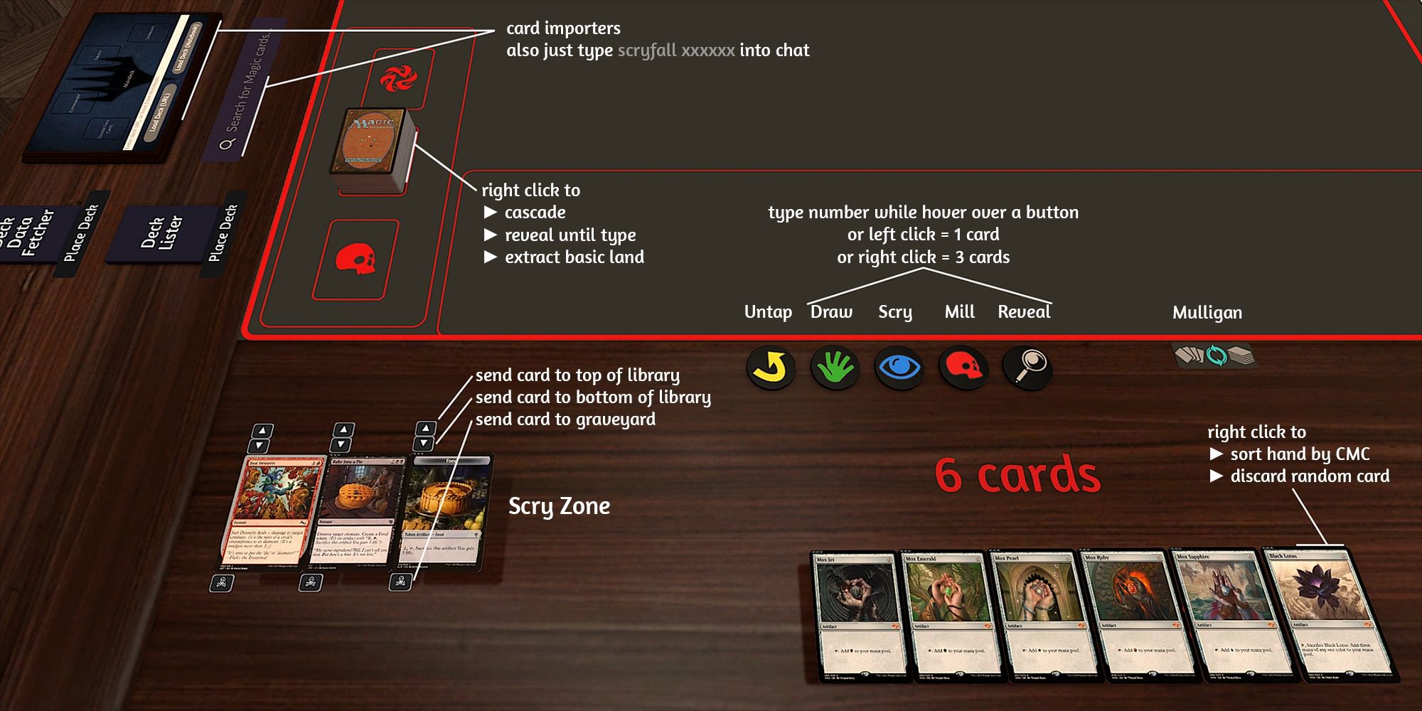 有一些按钮可以即时铣削、重置、调度和抽牌,并且在图书馆或墓地中搜索基本地或任何您需要的东西并不困难。