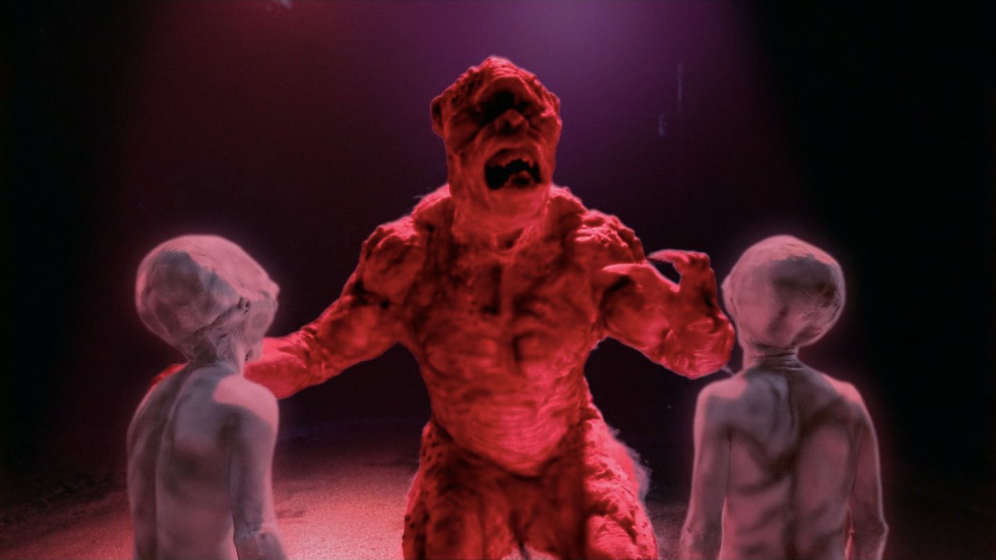 一对年轻夫妇在黑暗的道路上行驶。突然,车停了下来,他们看到头顶上有一个不明飞行物。当两个灰色外星人接近他们的车时,青少年们昏倒了。然后,另一艘宇宙飞船抵达,从里面走出一个毛茸茸的独眼外星人。一个灰色的外星人用完全人类的声音说道:“杰克,那是什么?”另一个灰色外星人回答道:“我到底怎么知道?”