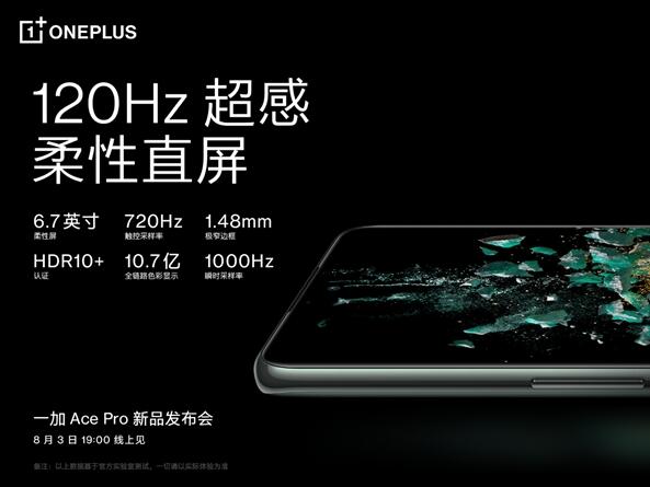 一加Ace Pro将于明日(8月3日)晚19: 00正式发布,现已在OPPO商城、JD.COM、天猫开启0元预约。发布会结束后,一加还将于8月6日在全国十个城市举办一加Ace Pro弹窗快闪活动。现在点击链接报名活动:https://www.oneplus.com/cn/ace-pro-popup.更多新品资讯,请关注一加官网、一加手机官方微博等渠道。