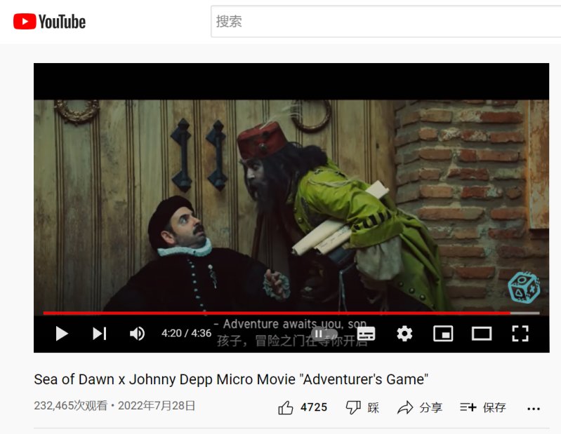 好莱坞巨星约翰尼德普携手《黎明之海》拍摄宣传短片《冒险者的游戏》。短片一经上映,不仅获得了国内粉丝的一致好评,也在海外媒体上引起了热议。