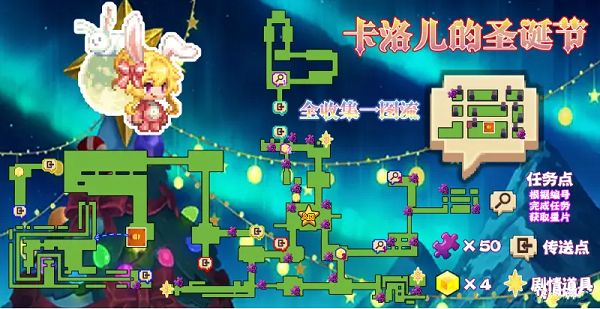 1.想开卡萝圣诞解锁条件:通关(世界3-6)魔法学院5楼。