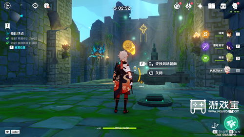 1.首先,我们进入秘密地点后,先关闭图中的右手机关,关闭风场。然后,将左侧风档的风场方向调整为向上,然后向左。