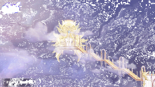不一样的世界展现在两人面前,凌驾于云层之上的金色城堡,飘散的白色羽毛......