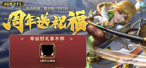 奖励不够?不要惊慌!2022年12月23日至2023年1月1日,周年庆送祝福活动带来新一波福利。活动期间可以完成日常登录、祝福发送、战斗胜利、分享等任务。累计祝福值可兑换池勇大使专属60积分代金券、全国艺术皮肤兑换代金券、六周年头像框、六周年好运大礼包!