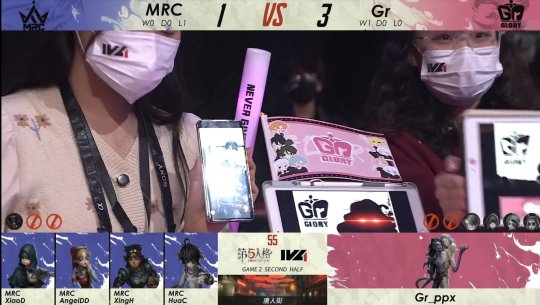 Gr的求生者选择了佣兵、邮差、杂技演员、祭司(BAN梦之女巫、“记录员”);MRC的监管者XC选择了破轮。(BAN前锋、先知、勘探员、舞女、昆虫学者)