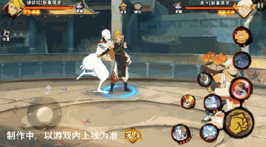 新春迪达拉后跳拉开身位,同时用粘土炮发射出粘土球,当粘土球命中对手后会变为粘土人偶,缠绕对手并爆炸。