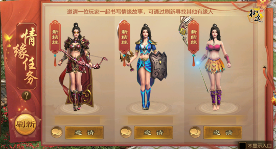 首先要给大家介绍的就是【情缘】任务了。与异性结伴,花前月下,秉烛共游,还有经验奖励相赠!角色等级达到65级的将军可在王城的月老处领取情缘任务,向你心仪的有缘人发起邀请。